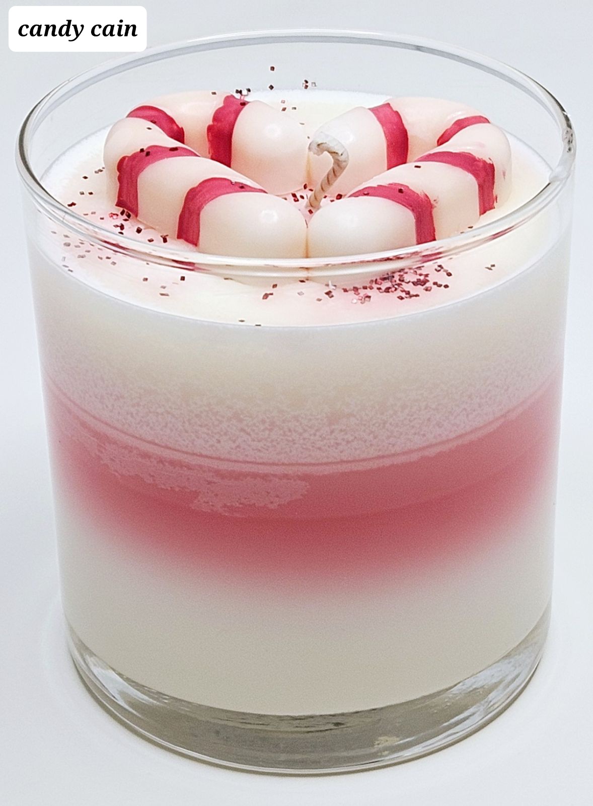 Every candle has been crafted with the finest ingredients such as our fragrance oils and essential oils each candle is 8 oz. they all last a long time around 30 plus hours. candy cain