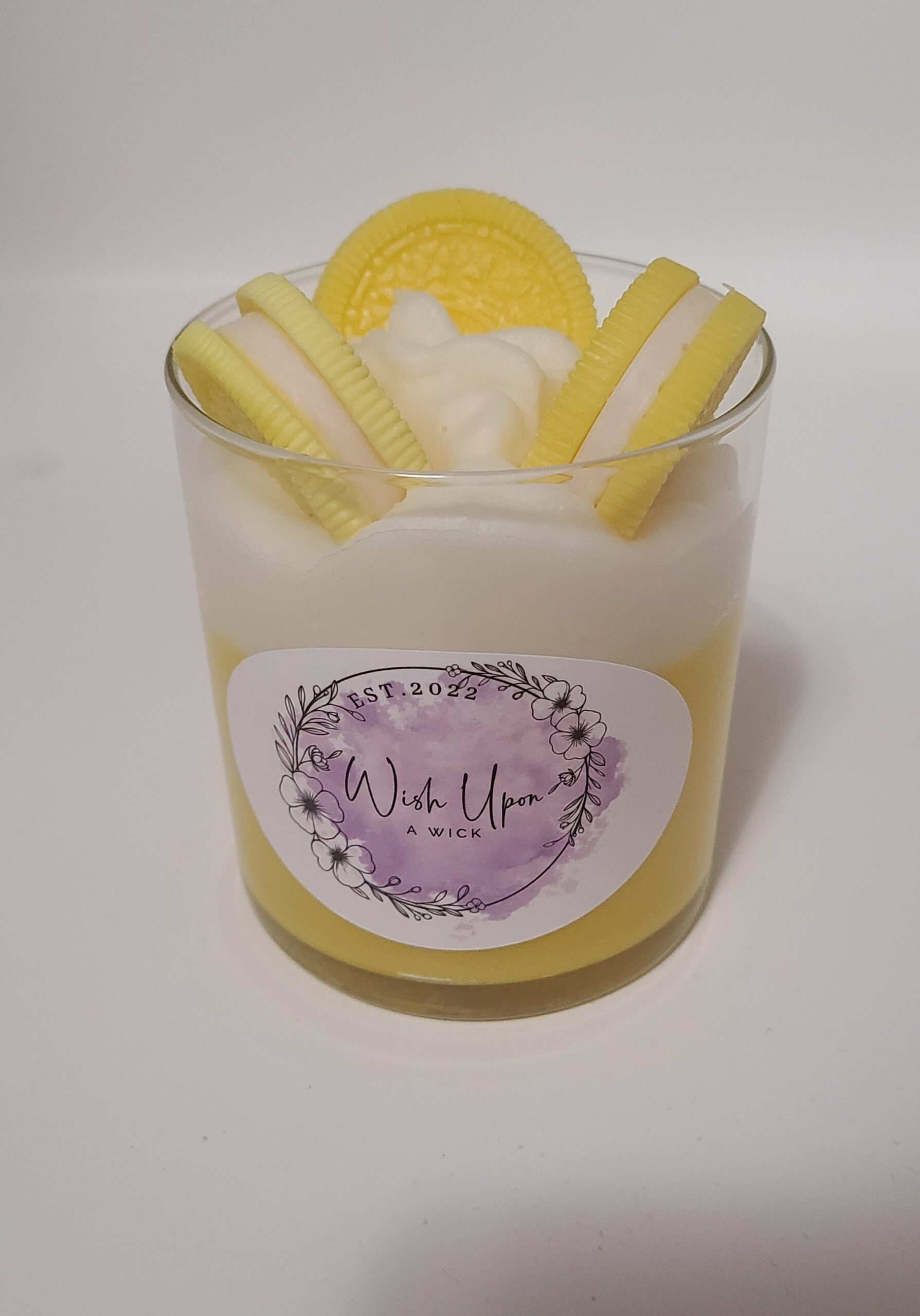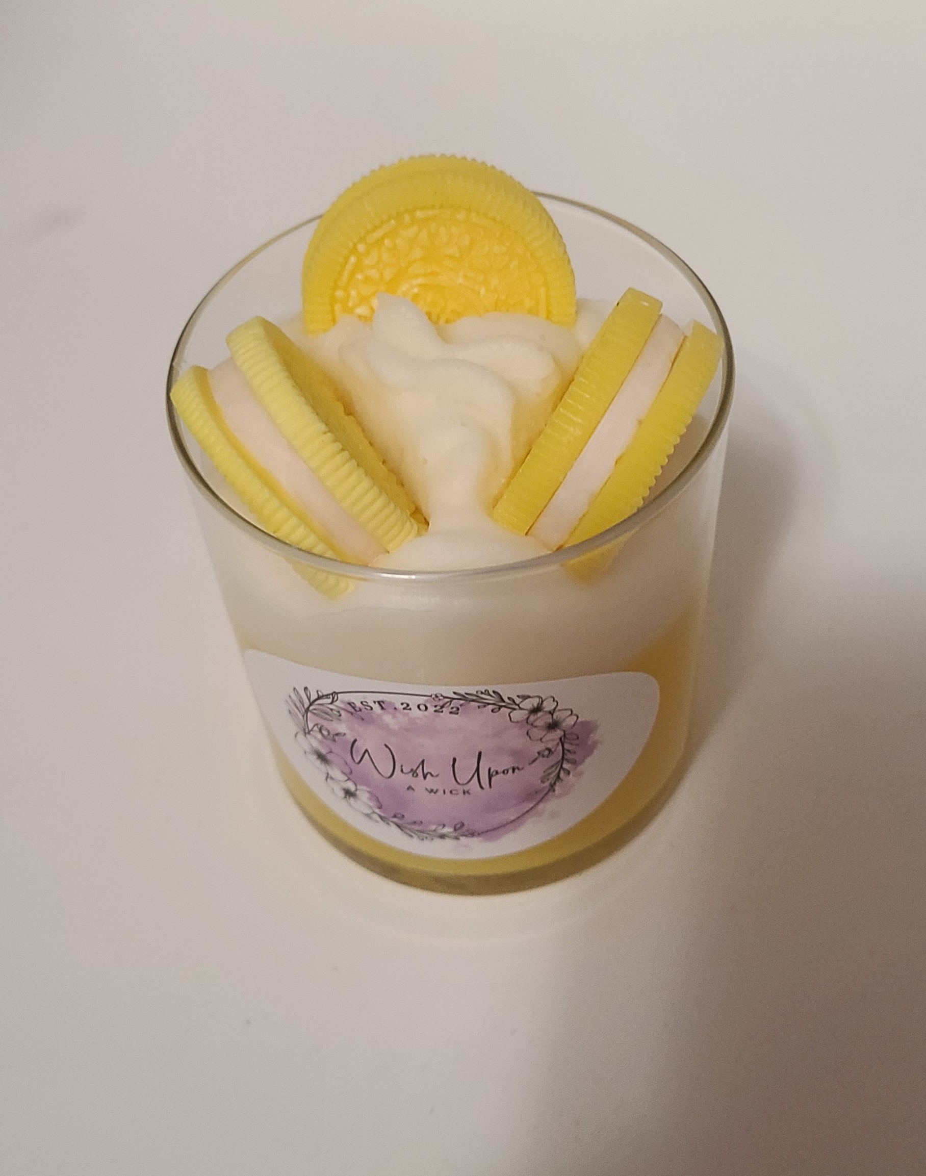 Delightful lemon Cookie Candle. This candle captures the warm, inviting aroma of freshly baked lemon cake and sugar cookies, creating a cozy atmosphere in any room. Light it up to fill your space with a sweet, uplifting scent that evokes memories of home-baked treats and joyful gatherings. Perfect for gifting or treating yourself, this candle is a must-have for anyone who loves the comforting essence of baked goods. Enjoy the delightful ambiance and let the sweet fragrance transform your home!